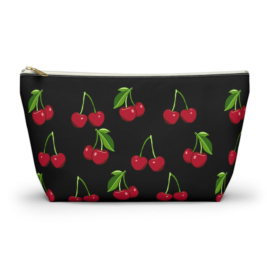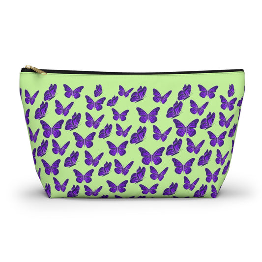 Light Green Accessory Pouch w T-bottom with Purple Butterfly Pattern