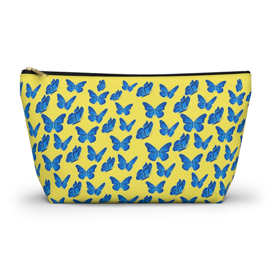 Yellow Accessory Pouch w T-bottom with Blue Butterfly Pattern