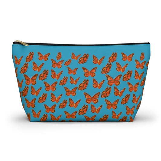 Turquoise Accessory Pouch w T-bottom with Orange Butterfly Pattern